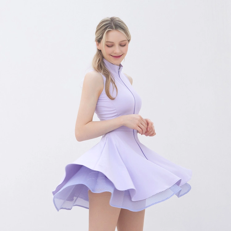 앞지퍼 더블 플레어 원피스 Zipper Double Flared Dress (Lavender)