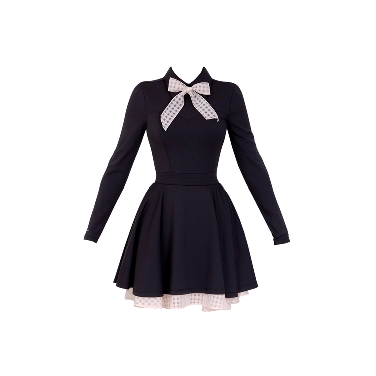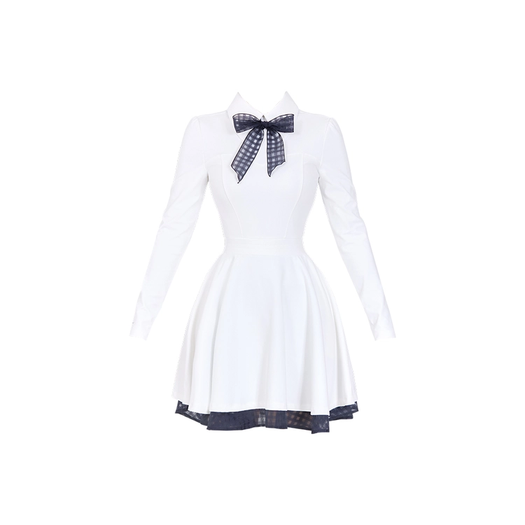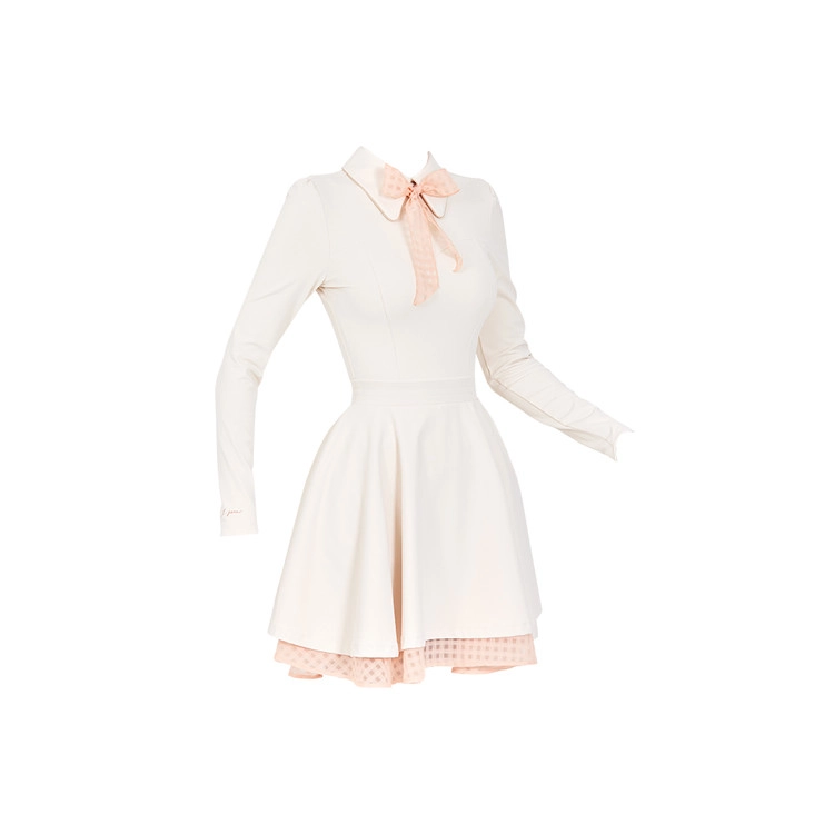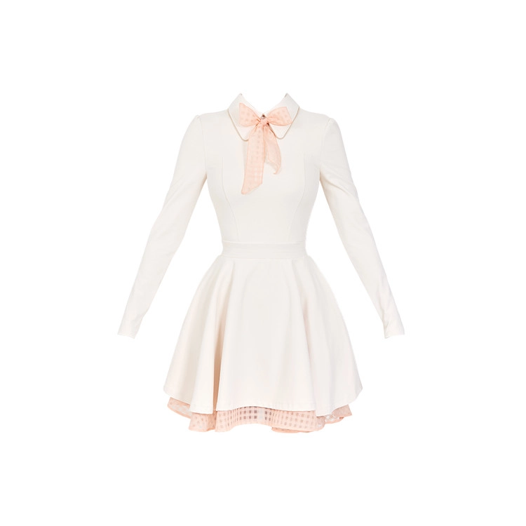 클래식 배색 리본 플레어 원피스 Classic Color Contrast Ribbon Flared Dress (Cream)