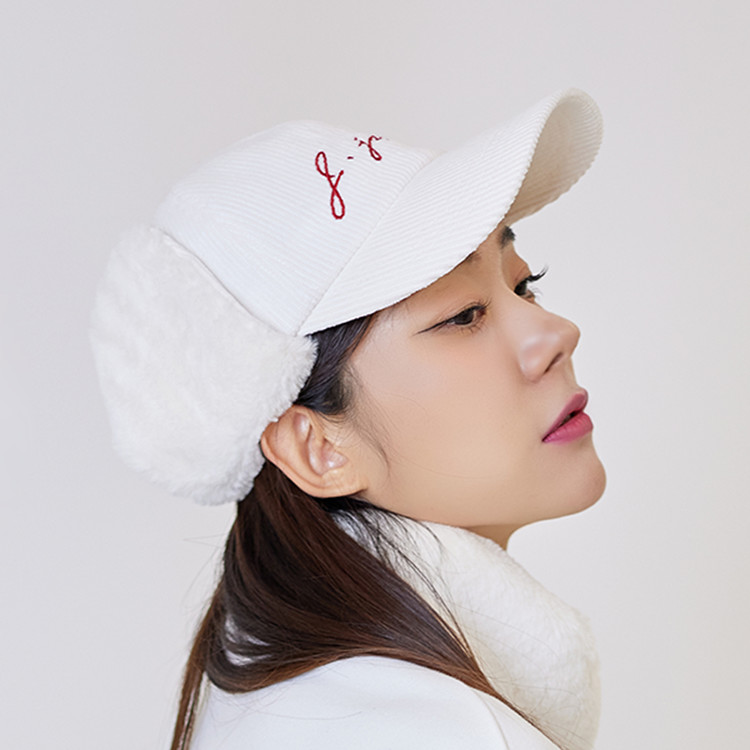 코듀로이 귀도리 볼캡 Corduroy ear flap ballcap (Ivory) 복제
