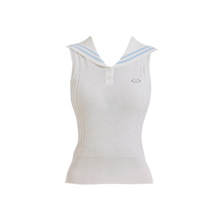 세일러 슬리브리스 니트 Sailor Sleeveless Knit (White) 복제