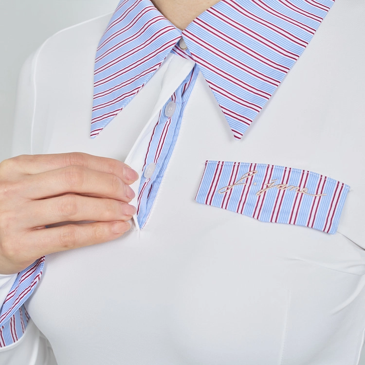 단정하고 산뜻한 셔츠스타일이 포인트가 되는 티셔츠입니다.