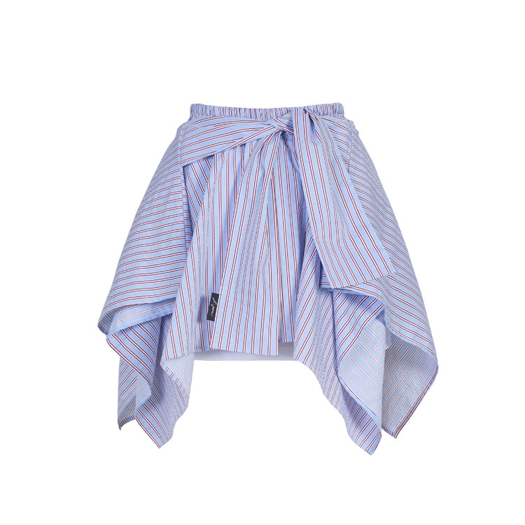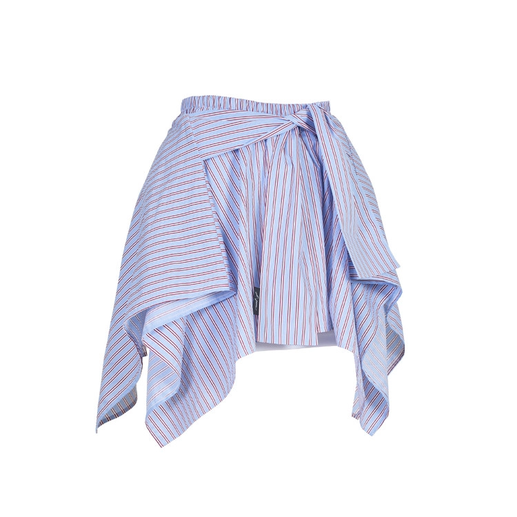 청량한 블루 스트라이프 셔츠를 허리에 두른듯한 레이어드 느낌의 스커트입니다.