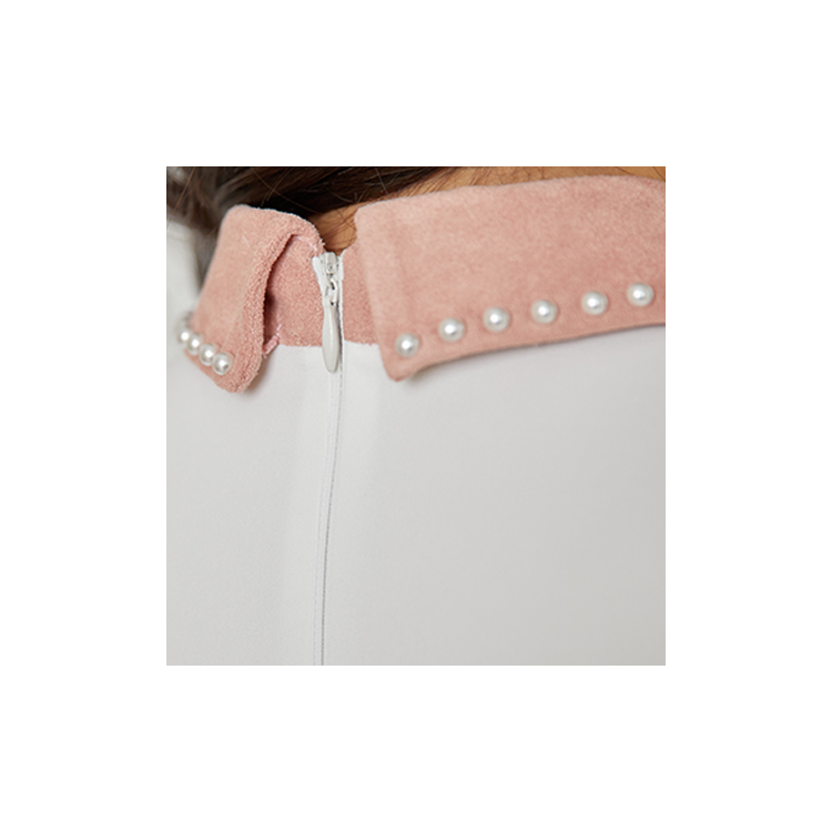 스웨이드 카라에 진주장식이 우아하고 여성스러운 티셔츠입니다!