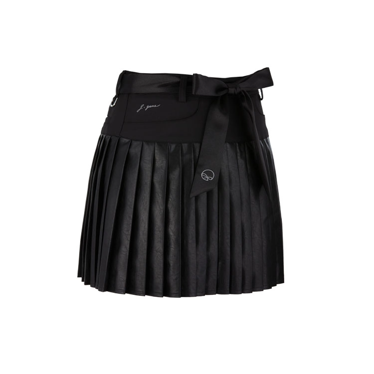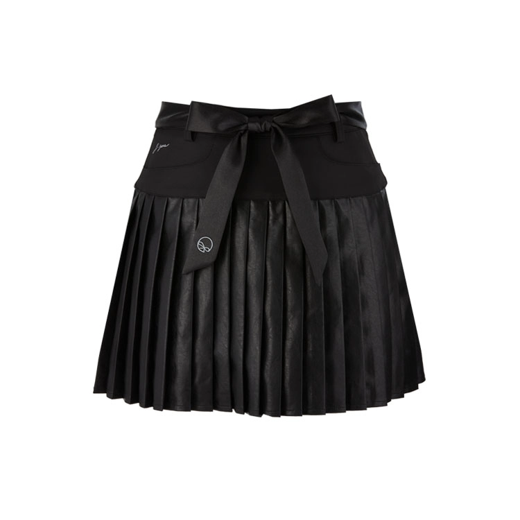 새틴 벨트 레더 스커트 Satin belt Leather skirt (Black)