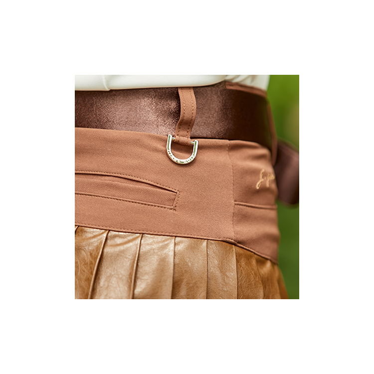 레더플리츠와 새틴벨트로 분위기 있는 필드룩을 연출할 수 있습니다!