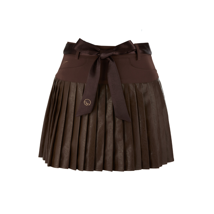 새틴 벨트 레더 스커트 Satin belt Leather skirt (Brown) 복제