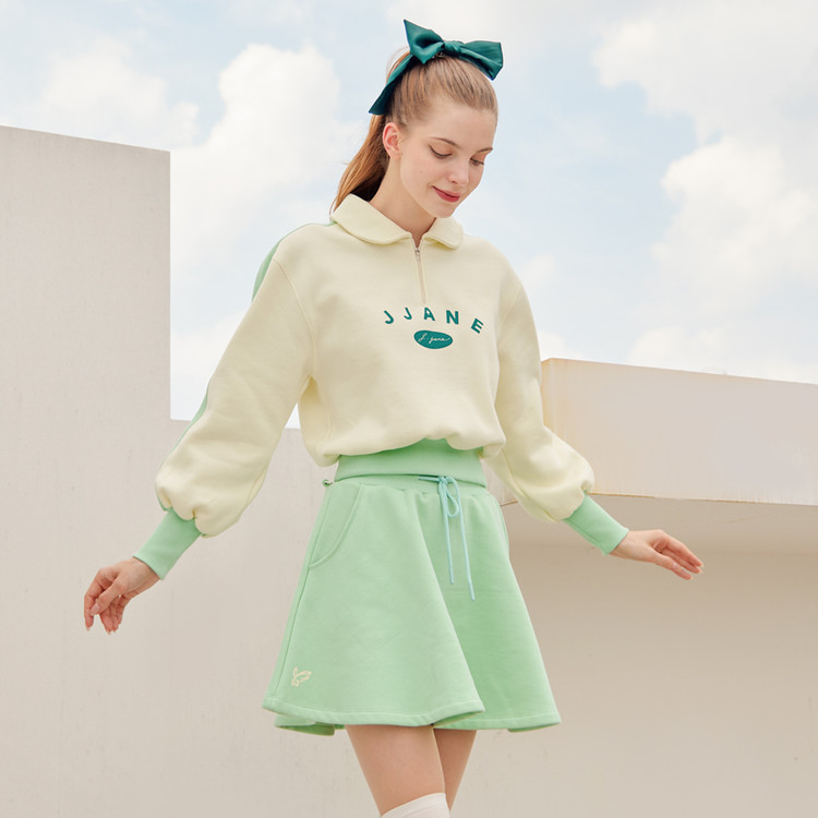 여유로운 핏감의 프리사이즈 제품으로, 스포티하고 발랄한 이미지입니다.